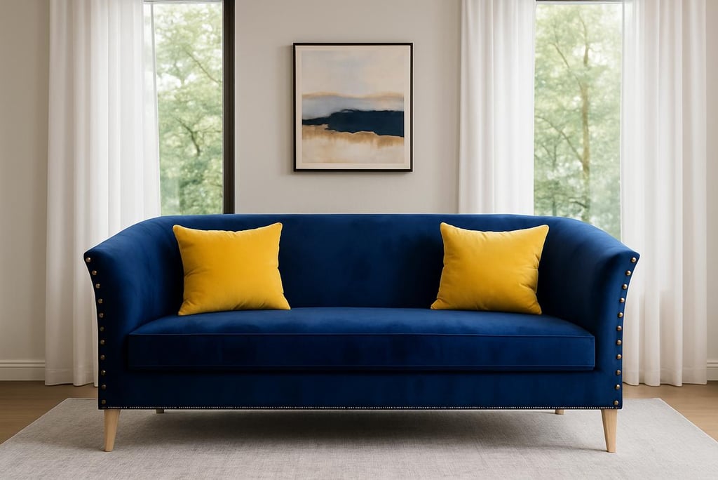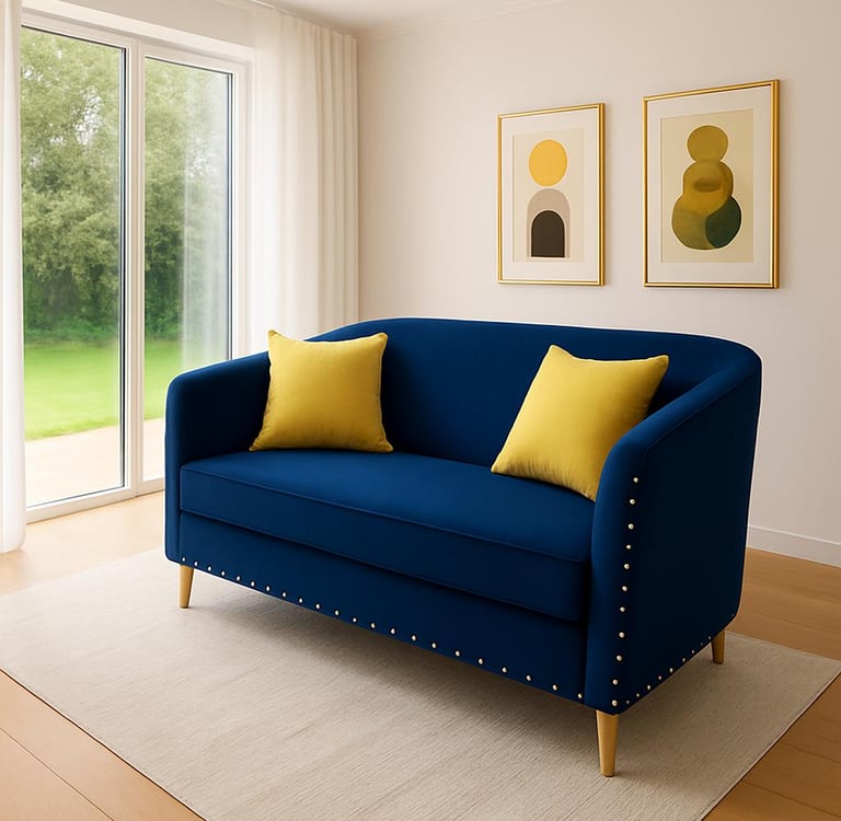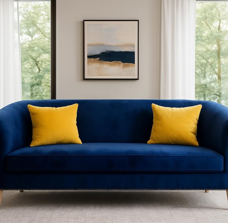 Tapizado en tela de alta resistencia color azul, ofrece un acabado elegante y minimalista, suave al tacto y muy fácil de limpiar, ideal para el uso diario. Su diseño sobrio y moderno se adapta a distintos estilos de decoración, aportando calidez, sofisticación y comfort. Fabricadas en madera de pino de primera calidad