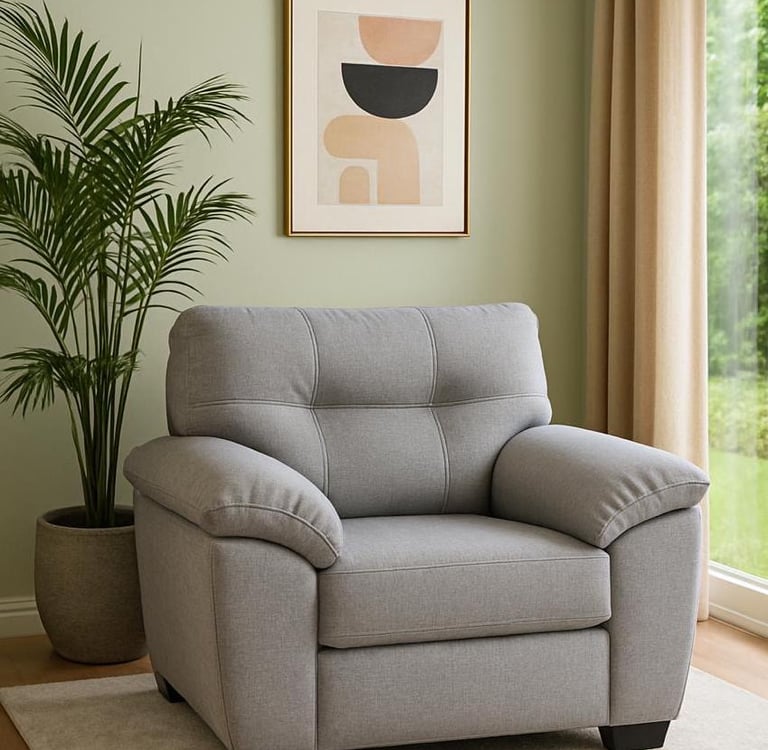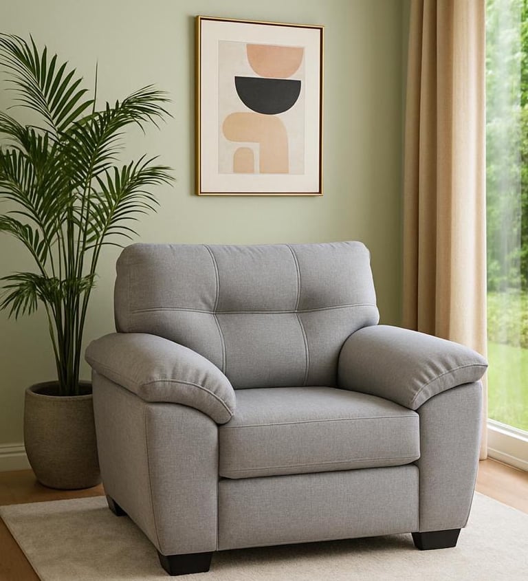 Tapizado en tela de alta resistencia color gris, ofrece un acabado elegante, suave al tacto y muy fácil de limpiar, ideal para el uso diario. Su diseño sobrio y moderno se adapta a distintos estilos de decoración, aportando calidez, sofisticación y comfort.