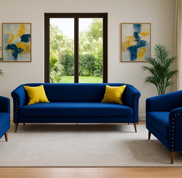 El Juego de Sala Juliett 3-2-1 en color azul combina diseño minimalista, comodidad y funcionalidad para crear un espacio perfecto donde compartir en familia. Este set incluye sofá de 3 plazas, loveseat de 2 y sillón individual, adaptándose fácilmente a salas amplias o medianas.