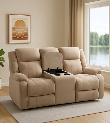 Dos sillones individuales con una estructura de madera combinada y acojinado de espuma de alta densidad, sinónimo de comodidad. Además, cuenta con portavasos y un compartimento para guardar tus pertenencias.